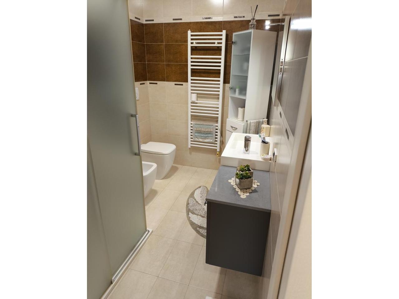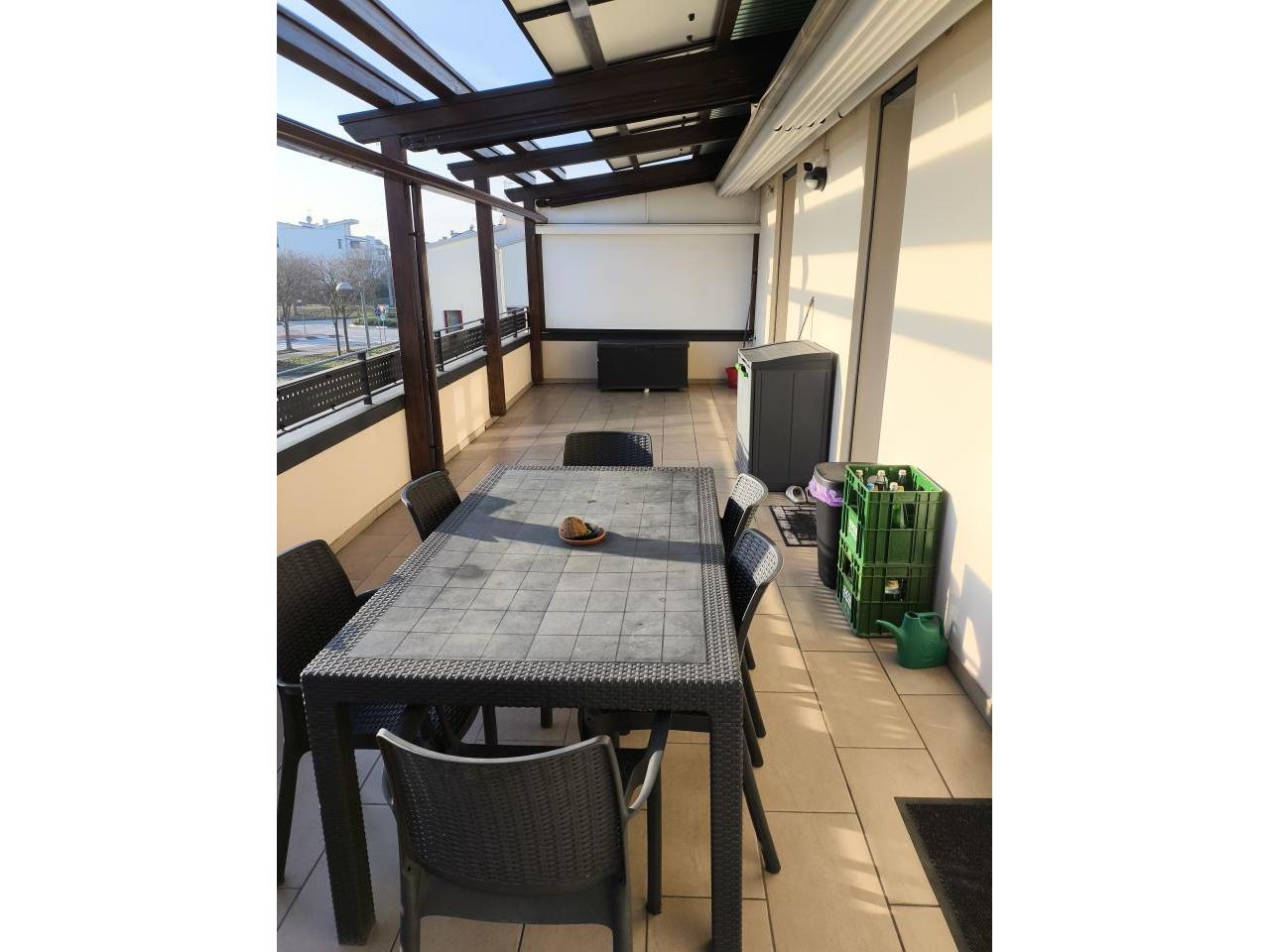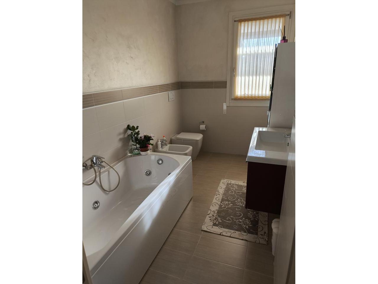 Albignasego Ferri tricamere con terrazzone mq 50 Albignasego quartiere Ferri vendesi recente appartamento di circa mq 140 tutto su unico piano, in classe energetica A3 ipe 37,12 kwh/mq anno, posto al piano primo di una palazzina con poche unità, in contesto molto tranquillo e comodo ai principali servizi del quartiere, composto da salone mq 35, cucina separata abitabile, 3 ampie camere (2 matrimoniali ed 1 doppia), 2 bagni, ripostiglio, garage al piano terra e posto auto privato. L’immobile è stato rifinito in ogni particolare con scelte fuori capitolato (pavimenti, porte interne, bagni) ed è dotato di riscaldamento a pavimento con pompa di calore di nuova installazione con accumulo acqua sanitaria, impianto fotovoltaico con potenza 6 kw e batteria di accumulo marca HUAWEI da 15 kw. Introvabile soluzione con terrazzo abitabile ULTERIORI ACCESSORI: zanzariere su tutte le finestre, 3 tende scorrevoli a copertura della pompeiana di marca GIBUS nel terrazzo grande, tenda marca GIBUS nel terrazzo più piccolo, impianto climatizzazione canalizzato ed indipendente per ogni stanza, impianto anti intrusione volumetrico e perimetrale con videosorveglianza, tapparelle in alluminio coibentato motorizzate, vasca idromassaggio. Nel prezzo è compreso l’arredo completo della cucina con elettrodomestici di marca e l’ arredo dei bagni.